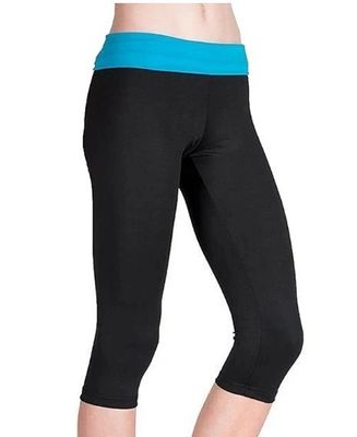 Micro Dri 3/4 Leggings in black. Size Chart is shown in second image.