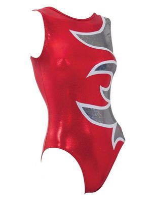 Sleeveless leotard in a shiny nylon Lycra fabric. A spiral of sparkly sequins with a sprinkling of crystals. Available in a range of colours.